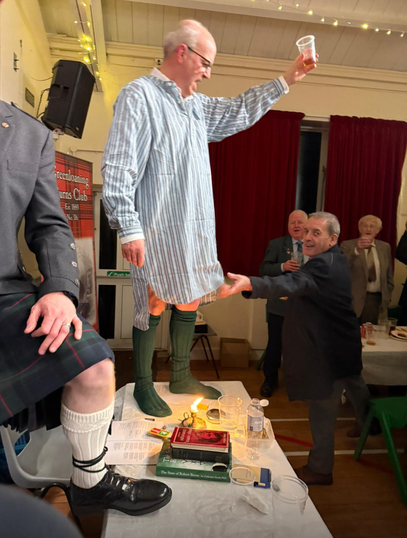 Donald duly accepted the challenge and ran two fantastic suppers that were well received by all who attended. Donald and several committee members also assisted in the resurrection of the Dunblane Burns Club, a local mixed supper that was well attended in 2024 with over 100 present. 2024 took a slight dip for them in terms of attendance, but GBC are committed to assisting them in the continuation of their club and the celebration of the bard.