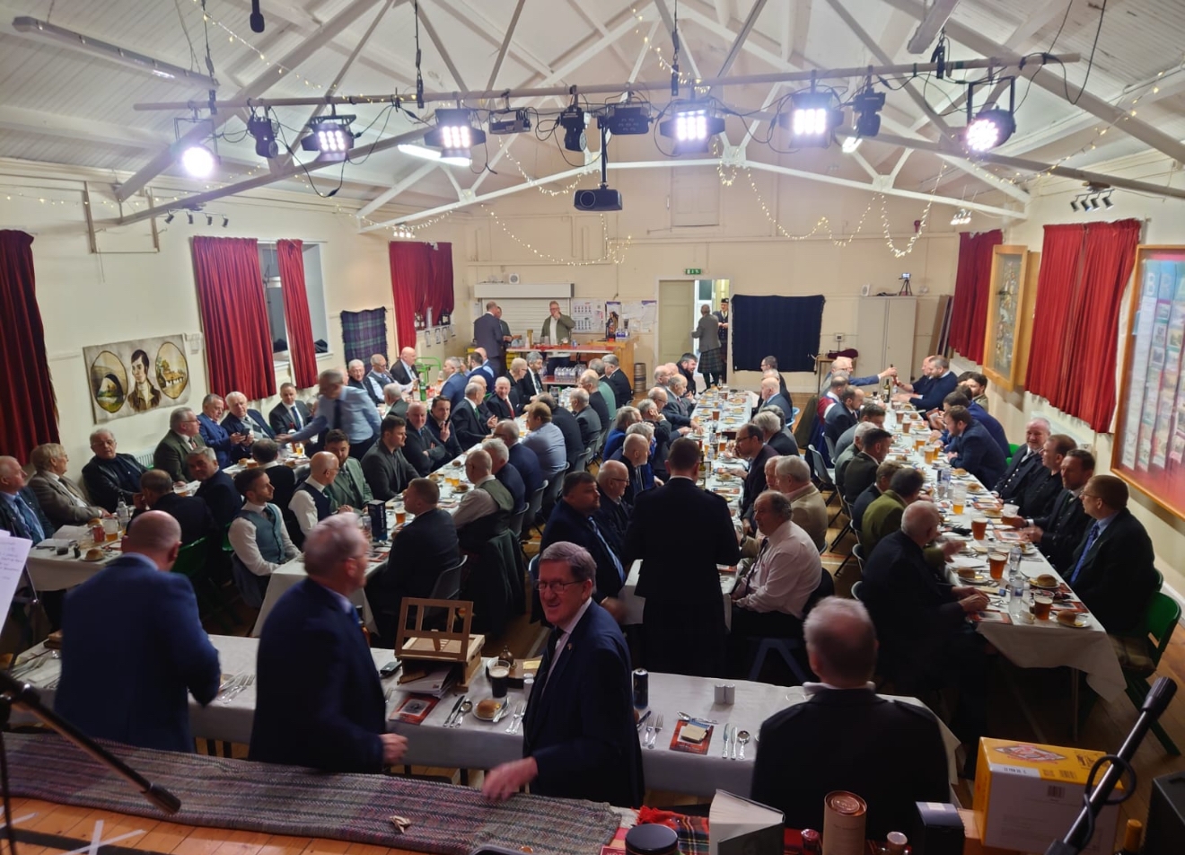 The 2025 supper saw Lord Robertson of Port Ellon deliver the immortal memory to a packed hall of 104 people with a slightly different layout, making full use of the stage.